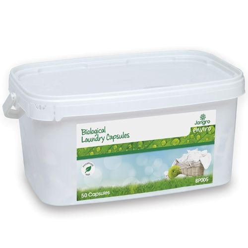 Jangro Enviro Biological Laundry Capsules are high quality laundry tablets that are perfumed to leave your clothes smelling clean and fresh. Offering outstanding cleaning results, these capsules come supplied in a compact plastic container, providing a more environmentally friendly cleaning product. With 50 washing tablets per box, these laundry capsules will make a great addition to your commercial washing supplies and are perfumed to leaving your fabrics smelling great! Just use one Jangro Enviro powder capsule in every wash for great results.