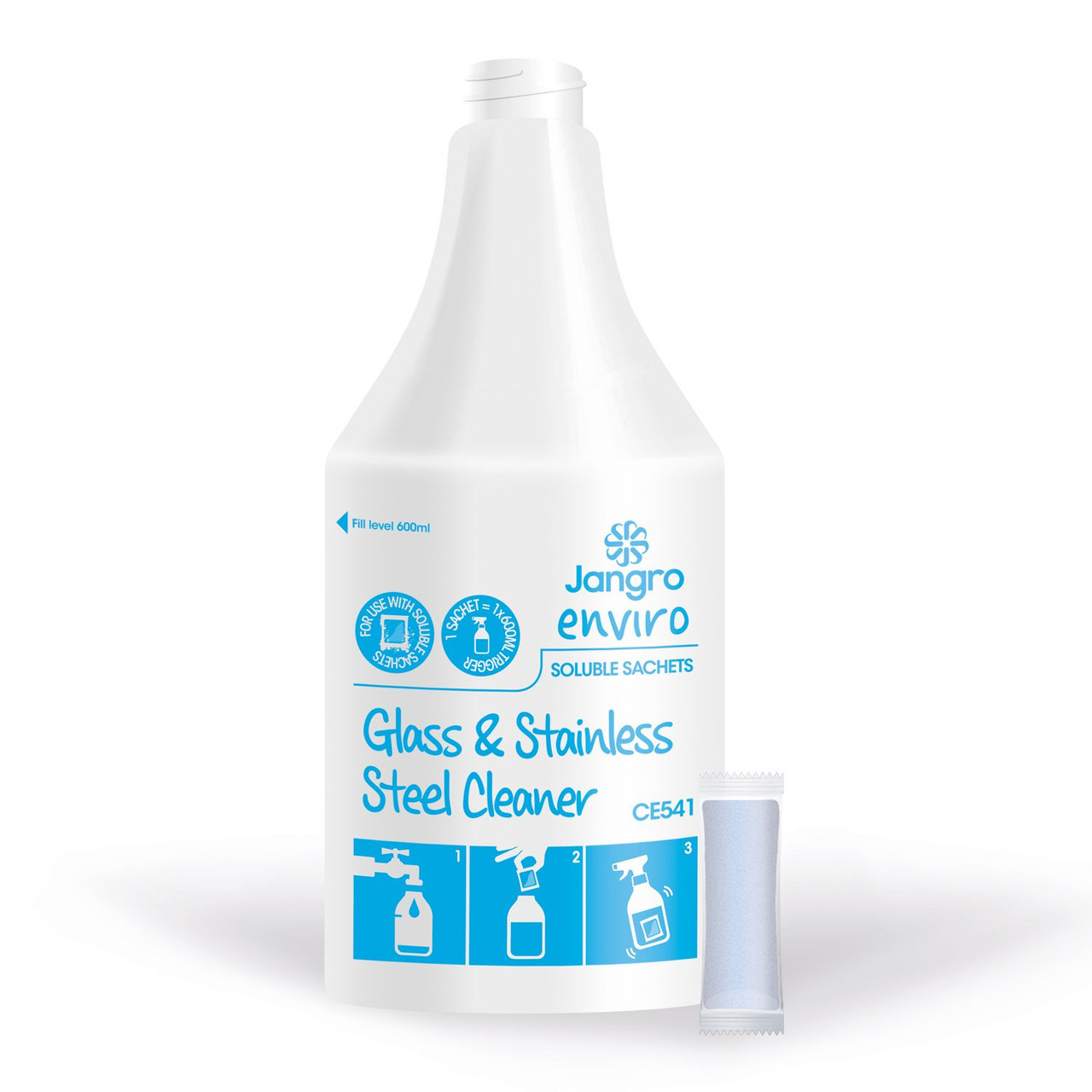 Jangro Enviro Glass Cleaner Sachet Trigger Bottle with Trigger Spray.