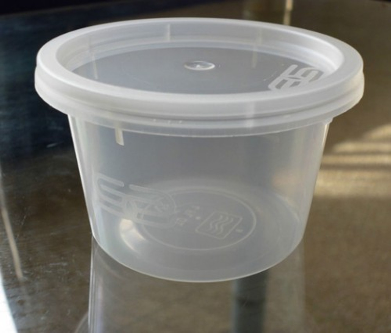 PRODUCT SPECIFICATION Round container with lid. Capacity: 12oz Microwavable. Reusable.