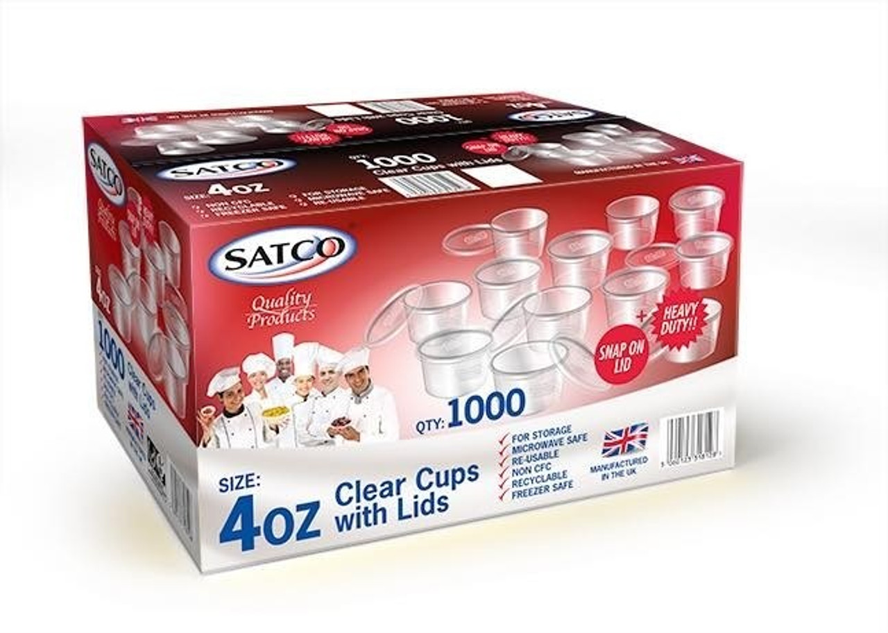 These Satco 4oz Round Pots with Lids are often overlooked by catering establishments until they realise that they need small takeaway containers to complement their larger throwaway containers. This not only works as a practical measure to limit larger containers being used for small items, but it’s also crucial for takeaway options such as sauces which need to be in a container that works as much for dipping as for transportation. These plastic pots with lids tick both boxes – they use less plastic than large takeaway containers and they are effectively shaped for use as a dipping container for sauces. Takeaway plastic pots with lids must be able to transport the sauce or portion easily but they must also be practical for the workplace. For example, these disposable plastic pots with lids are commercial grade food containers that are microwave safe, freezer safe, fridge safe and dishwasher safe. They are also stackable for simple storage in a busy environment. Thanks to their clear transparent design, they can be used across a variety of catering locations without appearing out of place. This package of 800 plastic pots with lids ensures a plentiful supply of transparent pots that are vital for the smooth running of many catering businesses. While the most obvious use for these plastic pots with lids is as sauce holders, there are plenty of other uses for them in busy catering locations. For instance, they can also be used by delis to sell small items such as olives that would be dwarfed in larger containers, as well as those larger containers being a waste of plastic. These disposable plastic pots with lids also act as effective sampling cups at tasting events, where portions can be neatly divided and handed out as necessary. These throw away plastic pots are vital for any business that deals in takeaways.